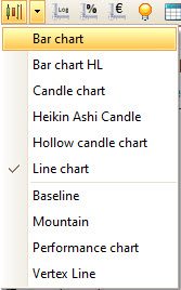 - Volledige selectie: klik op het kleine driehoekje om het popup-menu te openen en kies uit alle beschikbare price plots.