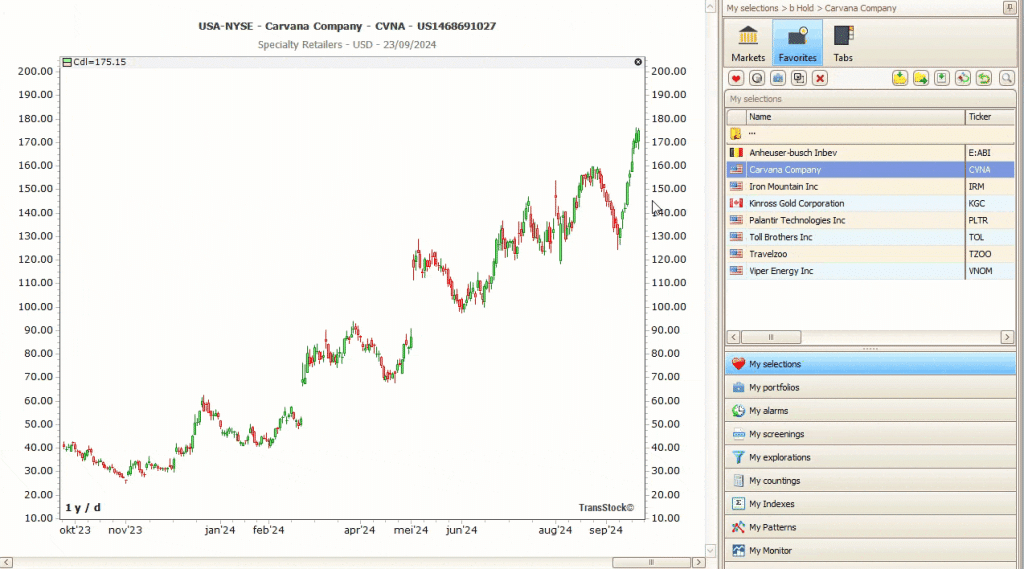 Met de nieuwe Verplaats-knop in de toolbar zet u een aandeel snel over van de ene map naar de andere (bijv. van ‘Hold’ naar ‘Sold’). Ideaal om watchlists netjes te houden zonder omwegen.