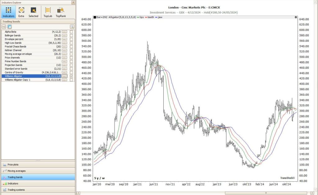 1. Open de verkenner indicatorenTrading BandsWilliams Alligator (aanvinken).