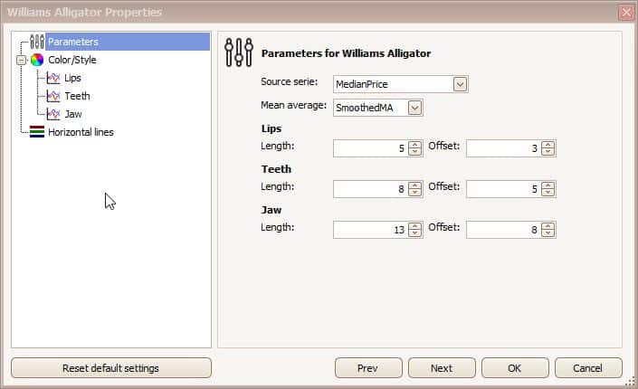 Indicators Explorer → Trading Bands → Williams Alligator.