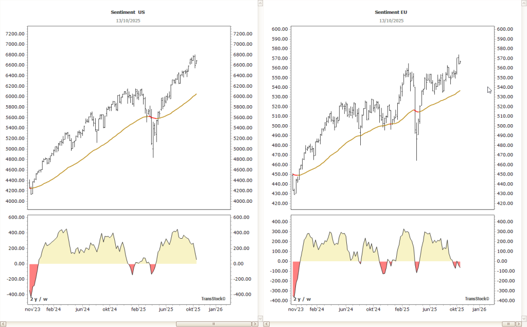 Zodra sentimentindicatoren zoals MarketPulse in het rood gaan of individuele aandelen door hun steun breken, is het verstandig om posities gedeeltelijk af te bouwen. Zo behoudt u middelen om later opnieuw in te stappen.